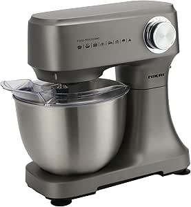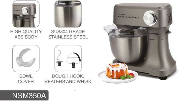 خلاط قائم بـ10 سرعات بقدرة 400 واط مع نبض وخطاف عجين ومضارب وخفاقة ووعاء سعة 3.5 لتر مع غطاء من نيكاي، NSM350A